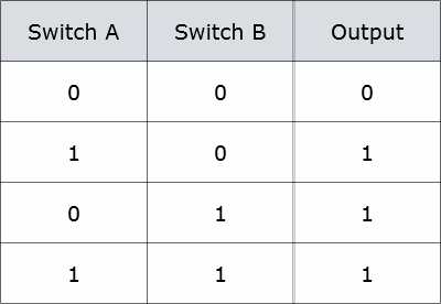If you build a circuit that has two switches in series with a lamp, it is possible to draw up a Truth Table to describe every possible state that the circuit can be in.